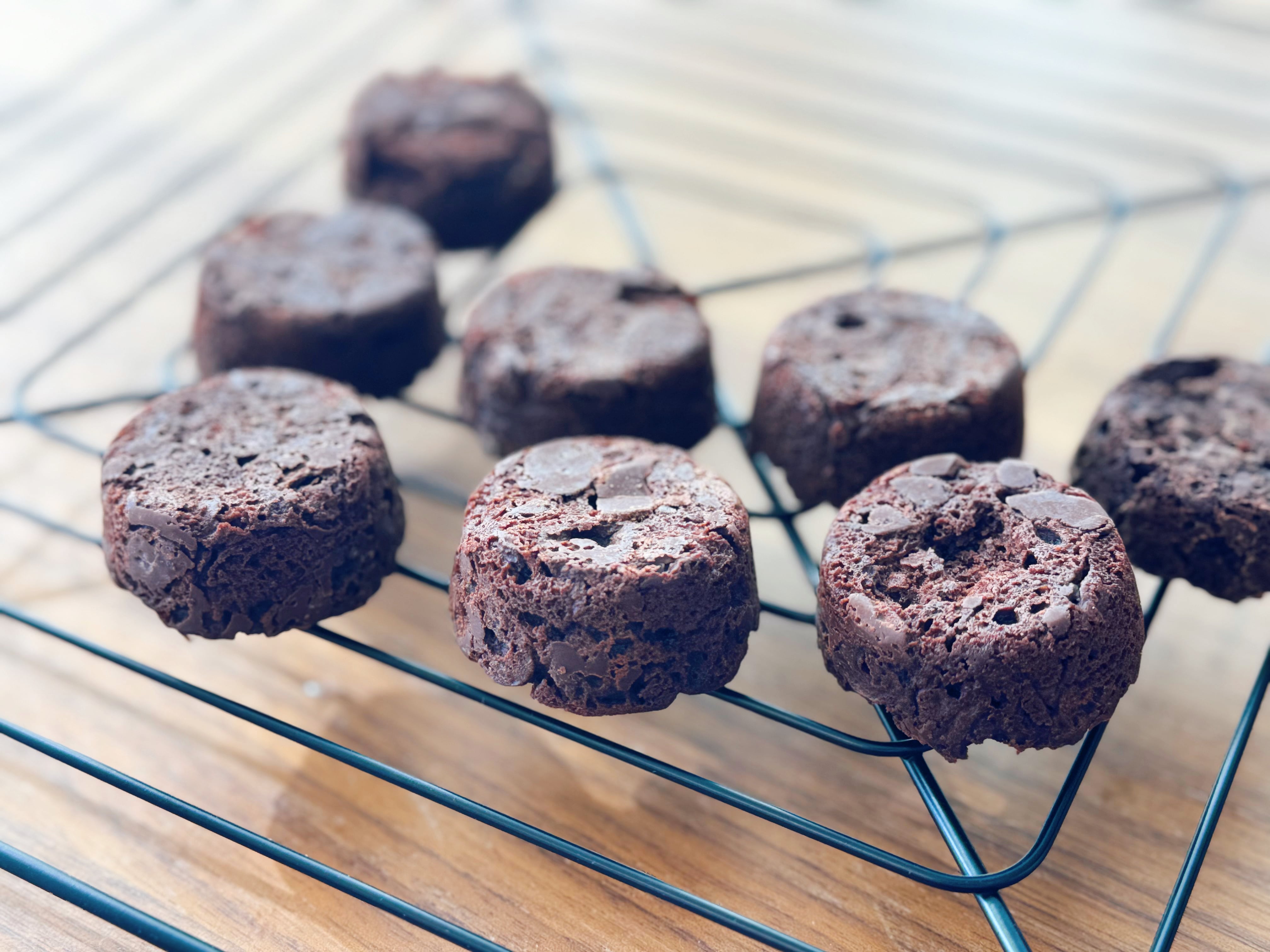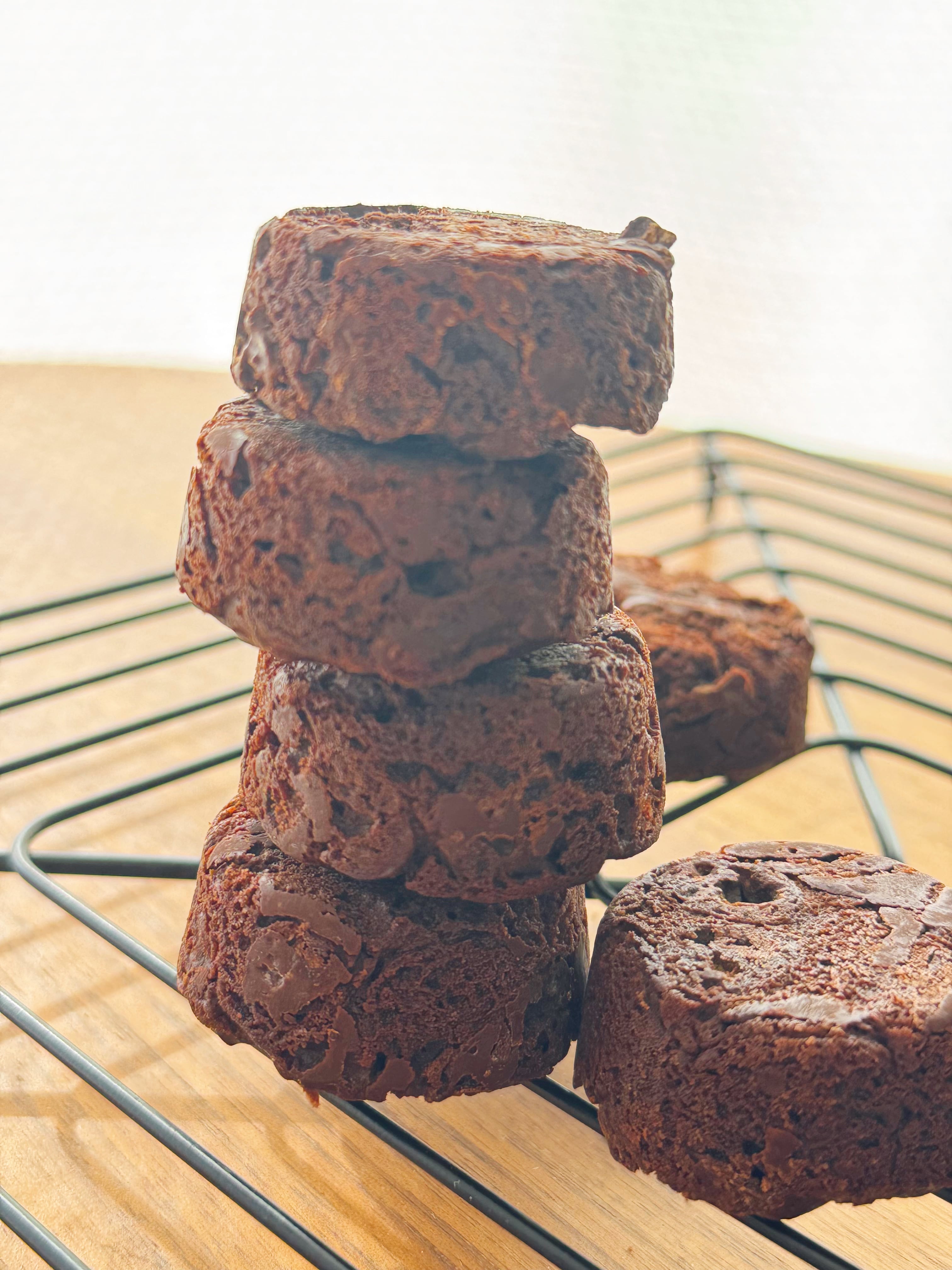 ビターとスイート、2種類のチョコレートを使用した。しっかり濃厚なザクザク食感のブラウニー。