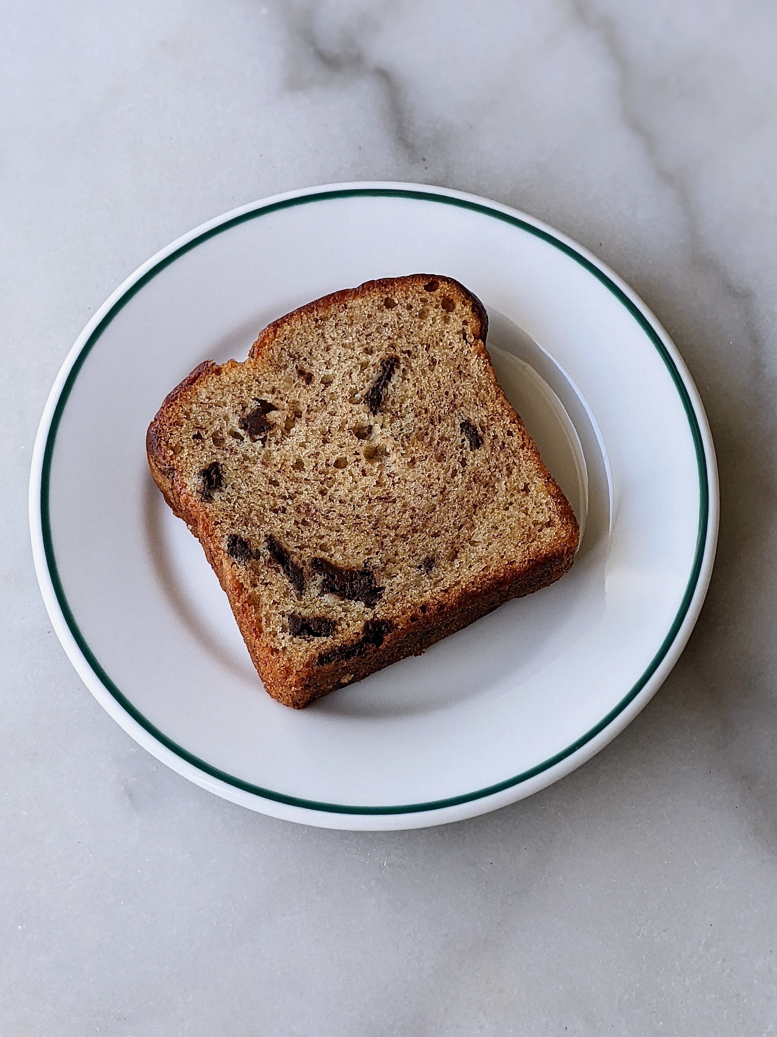 バナナブレッド:バナナ(エクアドル)、小麦粉、甜菜糖、グレープシードオイル、卵、チョコレート(カカオマス、砂糖、ココアバター)、ヨーグルト、塩/ベーキングパウダー、重曹、レシチン、香料(一部に卵・乳成分・小麦・大豆・バナナを含む)